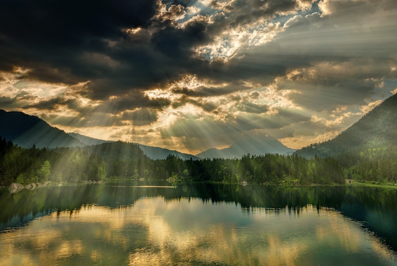 Boos prikte de zon met haar stralen in de wolk: "Ga weg jij! Je houdt mijn licht tegen. De mensen willen zon!" Maar de wolk bleef rustig hangen en strekte zich nog wat verder uit. Als een deken lag hij over het land en er kwam geen straaltje zon meer door.